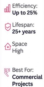 Solar panels integrated with battery backup options ensure continuous power supply & safeguard against outages.